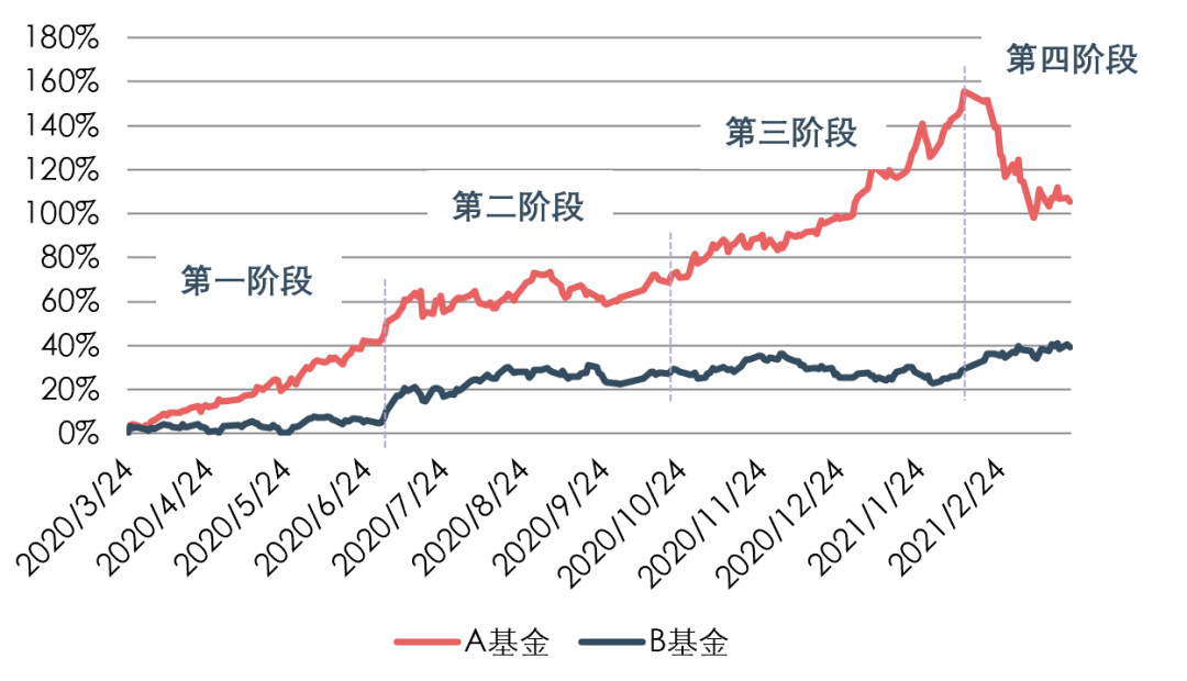 对于行业及个股配置分散、偏好低估值的基金,同样要做长期投资的准备。过去一年最差的策略是什么?起初下定决心做一次长期投资,买了B基金,熬到第三阶段,终于耐不住寂寞,切换为A基金,不巧追在高点,遇到调整又连忙杀跌,两头不沾。当然,这样的“精准择时”也需要够低的人品才能做到……